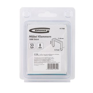 - Скобы, 8 мм, для мебельного степлера, усиленные, тип 53, 1000 шт. Gross 41708 по выгодной цене 79 р. руб.;