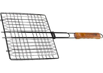 Решетка-гриль предназначена для запекания мяса, птицы и овощей над углями на открытом воздухе. Изготовлена из жаростойкой стали с антипригарным покрытием, которое исключает прилипание продуктов. Деревянная рукоятка не нагревается и хорошо лежит в руке, что обеспечивает безопасность приготовления пищи. Увеличенные опорные стержни позволяют удобно расположить решетку на мангале и задействовать ее поверхность полностью. Надежное кольцо-фиксатор предотвращает самопроизвольное открывание решетки. None Страна производства: Китай