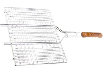 Решетка-гриль предназначена для запекания мяса, птицы, рыбы и овощей над углями на открытом воздухе. Изготовлена из высококачественной жаростойкой стали с хромовым покрытием. Деревянная рукоятка не нагревается и хорошо лежит в руке, что обеспечивает безопасность приготовления пищи. Увеличенные опорные стержни позволяют удобно расположить решетку на мангале и задействовать ее поверхность полностью. Широкое и плоское кольцо-фиксатор предотвращает самопроизвольное открывание решетки. None Страна производства: Китай