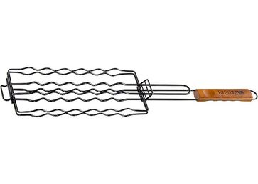 Решетка-гриль предназначена для приготовления сосисок, колбасок, шпикачек над углями на открытом воздухе. Изготовлена из высококачественной жаростойкой стали с антипригарным покрытием, благодаря которому продукты не прилипают к решетке. Деревянная рукоятка не нагревается и хорошо лежит в руке, что обеспечивает безопасность приготовления пищи. Широкое и плоское кольцо-фиксатор предотвращает самопроизвольное открывание решетки. None Страна производства: Китай