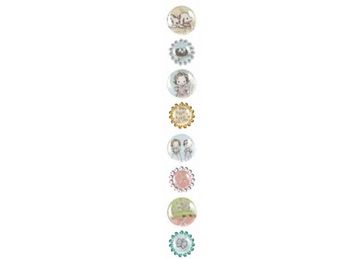 Объемные пластиковые наклейки для скрапбукинга Prima. Размеры 1,25 и 1,88 см, упаковка 8 штук. Маленькие наклейки окружены стразами. None