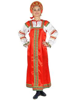 - Русский народный костюм атласный комплект красный "Василиса": сарафан и блузка, XS-L по выгодной цене 3 690 р. руб.;
