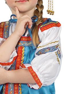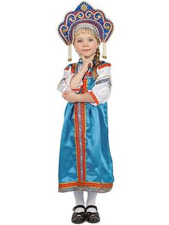 - Русский народный костюм детский голубой атласный комплект "Василиса": сарафан и блузка, 7-12 лет по выгодной цене 3 290 р. руб.;