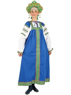 - Русский народный костюм льняной комплект синий "Забава": сарафан и блузка, XS-L по выгодной цене 3 790 р. руб.;