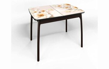 Стол СМ-305 Флорида опора массив изогнутая венге станет ярким элементом интерьера кухни, гостиной или столовой комнаты. Модель выполнена в современном стиле. Столешница раздвижная ЛДСП 16 мм + стекло с фотопечатью 4 мм. Механизм раздвижения - бабочка.. None Страна производства: Россия Есть доставка.