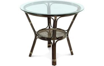 Обеденный стол Ellena из натурального ротанга. Стол не разборный. Стекло крепится на силиконовые присоски. Оптимальная высота позволяет сочетаться как с обеденными стульями, так и с креслами из кофейных комплектов. None Страна производства: Индонезия Есть доставка.