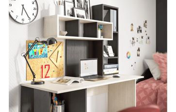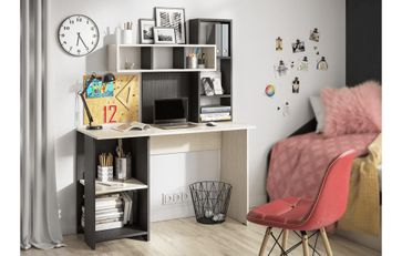 Современный компьютерный стол Олимп стильно смотрится в любом интерьере. Открытые полки сложной геометрии не загромождают пространство комнаты