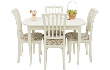 Комплект выполнен в традиционном стиле. Утонченный дизайн стола делает конструкцию легкой и элегантной. Стулья с классическими линиями и прочной, удобной спинкой. None Страна производства: Россия