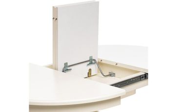 Круглый стол Луизиана исполнен в классическом стиле. Устойчивая центральная ножка делает силуэт изделия особенно изящным. Столешница выполнена из материала МДФ и покрытая эмалью и матовым лаком. Центральная вставка - бабочка хранится внутри стола. В разложенном виде, длина стола - 1200 мм. None Страна производства: Россия