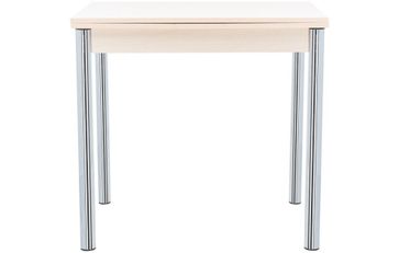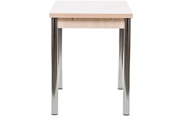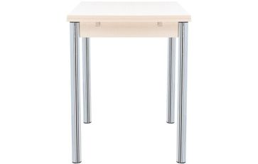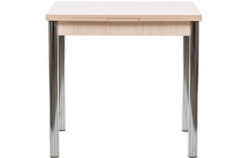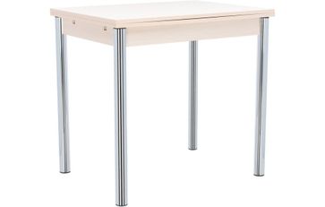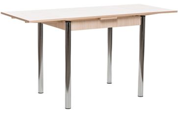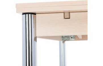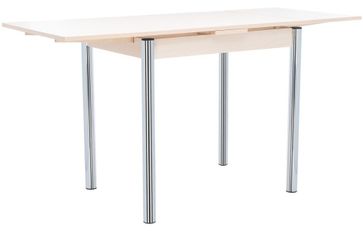 Это то, о чем принято говорить “просто и со вкусом”. Вкус у дизайнера отменный: простой прямоугольник, имитирующий срез натурального дерева и четыре лаконичные цилиндрические ножки с хромированным блеском идеально сочетаются. Чистота пропорций и качество исполнения создают законченный образ и удобную комфортабельную мебель, для которой можно найти место даже в тесном помещении. Скругленные углы удачно гармонируют со всей конструкцией. Конструкторское решение также интересно: выдвижной механизм боковых частей, позволяет увеличивать столешницу на три размера (800, 1135, 1470 мм.). None Страна производства: Россия