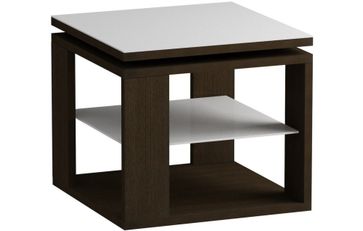 Компактный и функциональный журнальный стол с полкой LS 747. Стол выполнен из ЛДСП со столешницей и полкой из стекла белого, кремового или черного цвета (на выбор). Можно использовать как чайный или кофейный столик, а также в качестве тумбочки в гостиной. None Страна производства: Россия