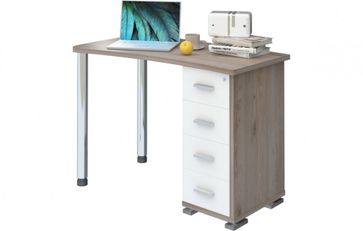 Компактный столик с тумбой Верхний ящик закрывается на ключ. Используется плита ДСП 25 мм. Размер столешницы по стороне у тумбы: 52см Размеры ящиков:22,5см(ш)х38см(г) Размер: 1100Ш x 620Г x 765В None