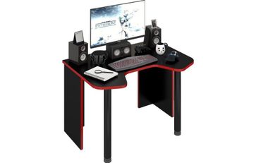 Удобный компьютерный стол для геймера. Контрастная кромка соответствует стилистике. Трапециевидный вырез в передней части столешницы позволяет игроку разместиться за столом с максимальным возможным комфортом и во время игры не держать локти на весу. Регулируемые опоры позволяют идеально точно отрегулировать горизонт рабочей поверхности стола. Большая и удобная столешница, позволяет расположиться за столом даже тем, кому нужно очень много рабочего пространства. На поверхности столешницы можно разместить даже несколько мониторов и при этом останется еще много места для всего самого необходимого. Размер: 1200Ш х 900Г х 750В None