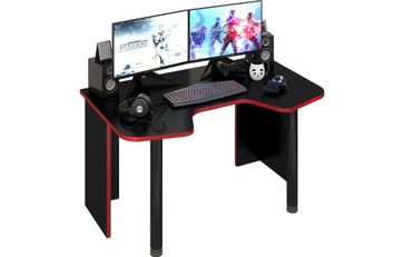 Удобный компьютерный стол для геймера. Контрастная кромка соответствует стилистике. Трапециевидный вырез в передней части столешницы позволяет игроку разместиться за столом с максимальным возможным комфортом и во время игры не держать локти на весу. Регулируемые опоры позволяют идеально точно отрегулировать горизонт рабочей поверхности стола. Большая и удобная столешница, позволяет расположиться за столом даже тем, кому нужно очень много рабочего пространства. На поверхности столешницы можно разместить даже несколько мониторов и при этом останется еще много места для всего самого необходимого. Размер: 1400Ш х 900Г х 750В None