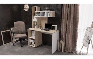 Компьютерный стол №4 — полноценный домашний офис, включающий стол с надстройкой и тумбой, содержащими открытые полки. Стол выполнен из ЛДСП в цветах Дуб Сонома / Белый. None Страна производства: Россия Есть доставка.