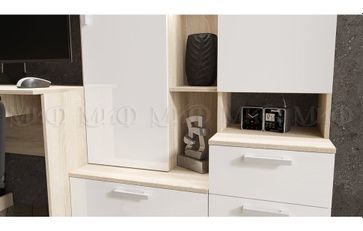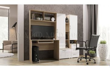 Компьютерный стол №6 — домашний офис, включающий стол с надстройкой, содержащей открытые полки, комбинированный шкаф-стеллаж с секциями с полками за распашными дверьми, открытые полки и 3 выдвижных ящика. Стол выполнен из ЛДСП в цветах Сонома / Белый глянец. None Страна производства: Россия Есть доставка.