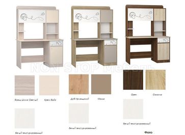 Письменный стол Котофей Размер 1200х600х1700h Цвет дуб ирландский / мокко/белый, ясень шимо светл / вайсс /белый, орех / дуб сонома / белый Корпус ЛДСП 16 мм Столешница ЛДСП 16 Кромка ПВХ 0,45 мм Кромка столешницы ПВХ 2 мм Дверцы с доводчиком Газлифт Направляющие шариковые Ручка металл Фотопечать на фасаде None