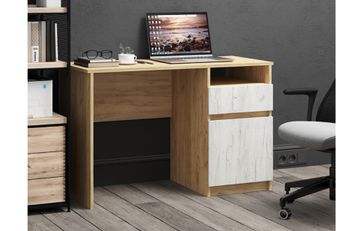Стол письменный ПС-07 — модель с тумбой, содержащей нишу, выдвижной ящик и секцию за распашной дверцей. Стол изготавливается в сочетании трендовых цветов Дуб крафт золотой и Дуб крафт белый с древесным рисунком. Материал ЛДСП. None Страна производства: Россия Есть доставка.