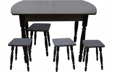 Комплект европейский СМ ДСП венге станет основой интерьера Вашей кухни или столовой комнаты. В составе набора раздвижной прямоугольный стол со скругленной столешницей и четыре табурета, выполненные в едином стиле и цветовом решении. Мебель производится из качественных материалов - ламинированная ДСП и массив березы. В составе комплекта: Стол Европейский СМ ДСП венге Табурет ДСП венге 4 шт. None Есть доставка.