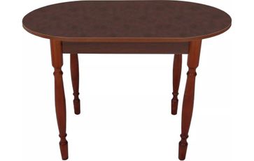 Стол овальный СМ пластик корень вяза станет элегантным решением для Вашей кухни или столовой. Стол имеет не раздвижную столешницу длиной 1100 мм с отделкой пластиком. Форма столешницы овальная. Ножки фигурные точеные из массива дерева, покрытые стойким цветным лаком. None Есть доставка.
