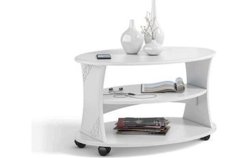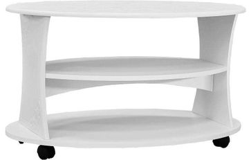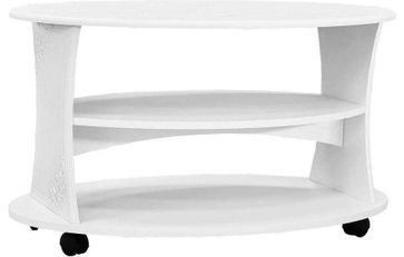Стол журнальный Италия ИТ-14 белое дерево дополнит интерьер жилой комнаты и сделает его более комфортным. Модель оборудована овальными столешницами. Конструкция с двумя открытыми полками для хранения журналов и газет. Стол установлен на колеса для удобного перемещения. None Есть доставка.