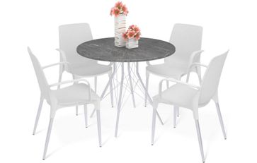 - Слайн Обеденная группа SHT-DS200 мрамор премиум темный хром лак белый в каталоге Садовые столы, столы для пикника в Санкт-Петербурге;