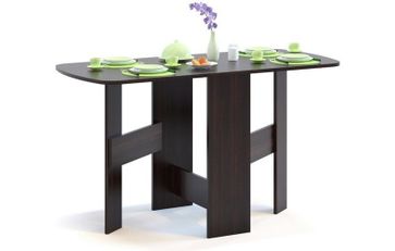 Компактный стол-книжка прекрасно подойдет для малогабаритной квартиры. В сложенном состоянии ширина стола всего 26 см. В разложенном виде стол превращается в полноценный обеденный стол. Также вы можете разложить стол только наполовину.