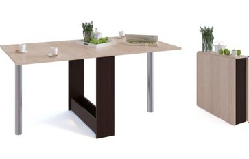 Стол-книжка СП-24м.1 — лаконичный стол-книжка с металлическими ножками. Такая модель будет полезным элементом как дома, так и на даче. В сложенном состоянии ширина стола составляет всего 21 см, он не займет много места и его удобно будет хранить в неприметном месте или использовать как тумбу под мелочи. В разложенном состоянии размеры столешницы составляют 1600 х 800 мм. За столом можно с комфортом разместить шестерых гостей. Чтобы разложить стол-книжку, нужно поднять крылья столешницы и вкрутить ножки в специальные опорные площадки. В сложенном виде ножки хранятся в нише по центру стола. None Страна производства: Россия Есть доставка.