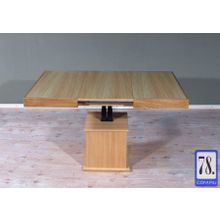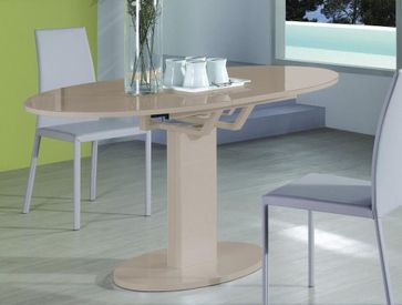 Стол-участник программы «Квартирный вопрос» на НТВ 1 декабря 2018 г. Стол B2332-1 имеет овальную столешницу из плит МДФ класса Е1, покрытых полимерным лаком и стеклом белого цвета или капучино. В сложенном состоянии его длина 120 см. Высота стола не меняется. Стол удобно раскладывается за счет выдвижения средней секции — до 150 см. Средняя секция (без стеклянных элементов) раскладывается при помощи механизма «бабочка». Под столешницей и в центральной ноге стола выполнены цельные металлические рамы, для прочности и надежности. Овальное основание, выполненное из МДФ, придает столу отличную устойчивость. Возможные цвета: