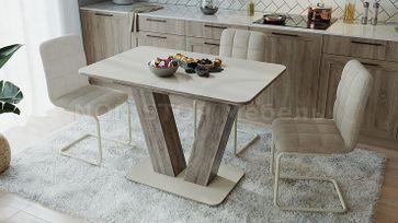 Стол раздвижной Чинзано Тип 1 Цвет Дуб сонома трюфель/стекло бежевое матовое, Дуб сонома светлая/стекло серое матовое, Моод темный/стекло белое матовое Размеры (Д×Ш×В): 1100(1495)×700×760 Механизм раздвижения синхронный Можно дополнить стульями как на изображении (Марсель, Франко, София), так и другими моделями None