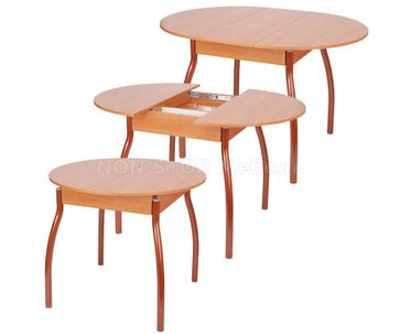 Стол раздвижной М4 Длина, мм 900 (1200) Ширина, мм 900 Высота, мм 750 ЛДСП столешница: Вишня грондталь, дуб горный, дуб светлый, дуб эврика, навара, наоми, ольха, орех, самерсет, сонома, жемчуг, ясень - некоторые цвета незначительно влияют на цвет - уточняйте Ножки Арабискат Гальваника Металлик Черный глянец Черный кроко Черный матовый Конструкция модели позволяет превратить небольшой круглый стол диаметром 90 см в достаточно крупный овальный стол длиной в 140 см. Таким образом, стол может быть использован как обеденный для 2-3 человек, а в случае необходимости может быть разложен для размещения 5-7 членов семьи. Круглые формы стола удобны, в отличие от прямоугольных, тем, что позволяют разместить большее количество людей с максимальным удобством. Кроме того, такой стол эргономичен и безопасен: в его конструкции отсутствуют острые углы и резкие формы. None