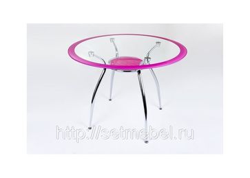 Стол стеклянный круглый Материал: Стекло/Сталь Размеры: d 1000х750 мм Цвета каемки и подстолья: розовый. None Возможен самовывоз. Есть доставка.
