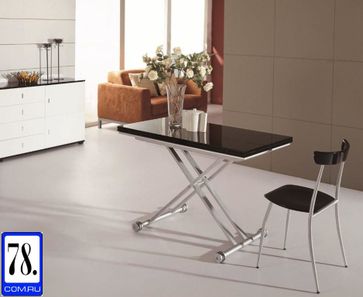 Стол-трансформер B2166-C имеет столешницу из двух плит МДФ 18 мм размером 11060 см, с лаком «высокий глянец» или ламинированных, складывающихся пополам. Максимальный размер столешницы — 110120 см, возможно разместить 6-8 персон. Ноги — стальные трубы, окрашенные серебристой краской. Движение вверх-вниз — с помощью газлифта, возможна фиксация на любой высоте. Также есть механизм фиксации от случайного поворота столешницы в сложенном и разложенном виде. Внутренние петли на столешнице видны, если стол разложен полностью, но зато они не выступают за край стола в сложенном виде. Стол прослужит долгое время даже при ежедневном раскладывании. Обрезиненные ролики, два из четырех — со стопорами. Если Вы хотите купить стол-трансформер и ищете современное функциональное решение для гостиной, то предлагаем приобрести стол-трансформер B2166 с легким и надежным механизмом регулировки высоты на газлифтах. Лаконичный дизайн, компактные габариты, регулировка по высоте – оптимальное решение для дома или квартиры. Несколько секунд – и стол-трансформер превращается из низкого журнального в полноценный обеденный. Теперь появление гостей не застанет врасплох – вы сможете с комфортом посидеть и выпить чай в гостиной. Одна из классических и самых узнаваемых моделей фабрики Gomlden, ведущего производителя домашней многофункциональной мебели. Трансформируемый стол – отличный вариант для тех, кто ценит комфорт, функциональность и стильный дизайн! Другое название м