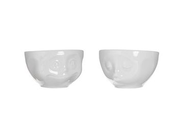 Набор "Счастье и Поцелуй" состоит из 2 чашек, изготовленных из фарфора белого цвета. Одна из них оформлена объемным изображением довольного, улыбающегося лица, другая - объемным изображением лица, вытянувшего губы как в поцелуе. Необычные чашки без ручек, несомненно, придутся по душе всем любителям кофе и чая.