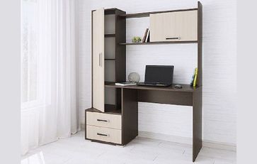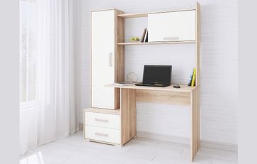 Стол компьютерный Квартет-9 — модель, продуманная до мелочей и созданная для Вашего максимального комфорта в процессе работы или учебы дома. Прямоугольная столешница со скругленными углами, надстройка с открытой и закрытой полками, закрытый шкаф-пенал и тумба с двумя выкатными ящиками - все, чтобы обеспечить удобное и грамотное хранение на рабочем месте. Приятный декор с имитацией текстуры натурального дерева придется по душе любителям эко-стиля в интерьере.