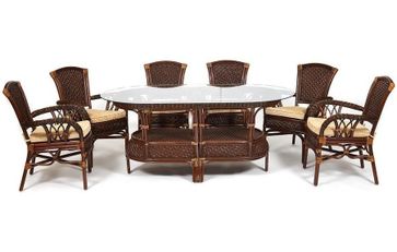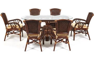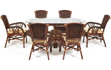 Закажите Tetchair Комплект обеденный "ANDREA GRAND" (стол со стеклом+6 кресел+ подушки), Pecan Washed (античн. орех) у компании NON STOP Мебель в Санкт-Петербурге на портале Alloy: