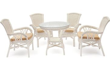 - Tetchair Комплект обеденный "ANDREA" ( стол со стеклом + 4 кресла + подушки), TCH White (белый) в каталоге Садовые столы, столы для пикника в Санкт-Петербурге;