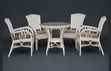 Изысканный обеденный комплект мебели Secret De Maison из коллекции ANDREA, состоящий из стола и четырех кресел, − идеальное решение для отдыха на загородном участке. Элегантные стулья с эргономичной спинкой, высокими подлокотниками, мягкой подушкой на сиденье и усиленным основанием каркаса обеспечат комфортный отдых и приятное времяпрепровождение на свежем воздухе. Устойчивый стол, дополненный нижней полкой, со столешницей из закаленного стекла добавит благородства и элегантности в оформление вашего сада. Стекло обладает повышенной прочностью, долговечностью, способно многие годы не утрачивать своей первоначальной привлекательности. Круглая форма стола располагает к приятному и непринужденному общению. Тканевая обивка подушек на сиденье проста в уходе, прослужит вам долгие годы, сохраняя свой первоначальный вид. Комплект выполнен из натурального ротанга с использованием нескольких видов традиционного индонезийского плетения и покрыт прозрачным матовым лаком, устойчивым к УФ-излучению. Он прочен, надежен, устойчив к повышенной влажности. Мебель идеально сочетается с изделиями из коллекции ANDREA, поставляется в собранном виде. Страна-производитель: Индонезия None Страна производства: Индонезия Есть доставка.