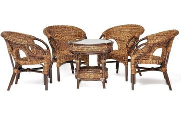 Tetchair Комплект обеденный "Mandalino" 05 21 ( 4 кресла + стол обеденный ) без подушек , walnut (грецкий орех), плетение-банановые листья