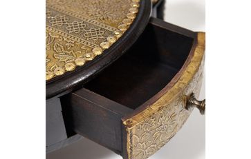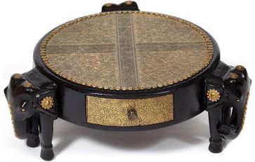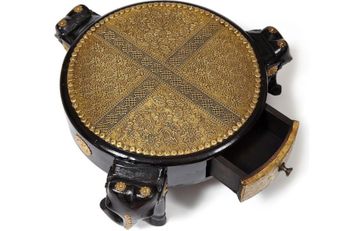 Уникальный столик Secret de Maison 3 SLONA, выполненный индийскими мастерами, добавит самобытной красоты и индивидуальности в ваш интерьер. Качественная ручная работа и традиции мастеров древнего Востока выделяют столик среди привычной мебели. Каркас из древесины манго, покрашенный в черный цвет, оригинальные ножки в виде слонов и изысканная столешница с отделкой под латунь и чеканкой ручной работы подчеркивают уникальность изделия, превращая его в произведение искусства. Компактные размеры, легкий вес и простота конструкции позволяют использовать столик, как по прямому назначению, так и в качестве дополнительной сервировочной поверхности. В небольшом выдвижном ящике можно хранить разные мелочи. Каркас изделия изготовлен из массива дерева манго, он практичен, надежен, прост в уходе и прослужит долгие годы, сохраняя свой первоначальный вид. Столик относится к коллекции ANTIQUE CLOCKS, поставляется в собранном виде. Страна-производитель: Индия None Страна производства: ИНДИЯ Есть доставка.