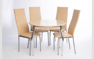 Обеденная группа Сатурн-4 состоит из круглого Раздвижного стола в цвете Ваниль на хром опорах.Столешница изготовлена из высококачественного пластика.Размер стола в сложенном виде d-90 см,в разложенном на 120 см.Механизм раскладывания Бабочка.В комплект входят стулья 4 шт на металлокаркасе ,обивка Экокожа Крокодил беж. None Страна производства: Россия Есть доставка.