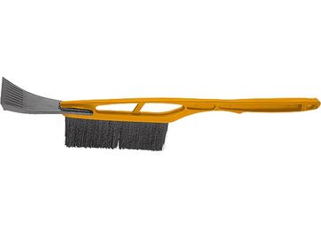Корпус щетки изготовлен из ударопрочной пластмассы. Ручка специальной формы, оснащена скребком для льда. Щетина средней жесткости. None Страна производства: Россия