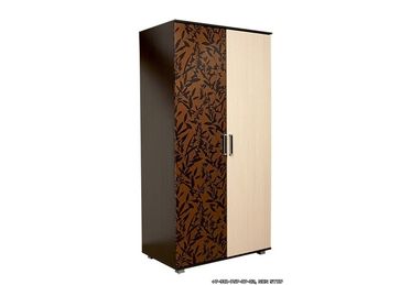 НМ 10.06 Шкаф Флора 1002 х 605 х h2000 Дуб молочный + ПВХ «Листья» / Венге Наполнение - полки и штанга - подробнее на втором изображении