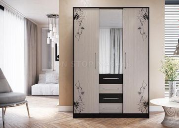 Шкаф-купе с ящиками Бостон Цвет Венге Цаво / Дуб Белфорт с рисунком, Ясень шимо / Бежевый фон глянец с рисунком Размеры (Ш×Г×В): 1506×560×2203 None