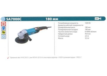 - Шлифмашина полировальная MAKITA SA7000C (1600Вт, 180мм, 0-4000об мин, 3.3кг) в каталоге Шлифовальное оборудование в Санкт-Петербурге;
