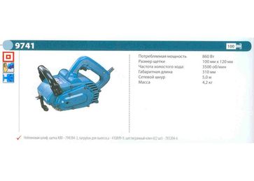 - Шлифмашина щёточная MAKITA 9741 (860Вт, 100х120мм, 3500об мин, 4.2 кг) по выгодной цене 14 200 р. руб.;