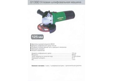 - Шлифмашина угловая HITACHI G13SD (800Вт, 125мм, 1.6кг) по выгодной цене 2 450 р. руб.;