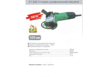 - Шлифмашина угловая HITACHI G13SS (580Вт, 125мм, 1.4кг) по выгодной цене 1 400 р. руб.;
