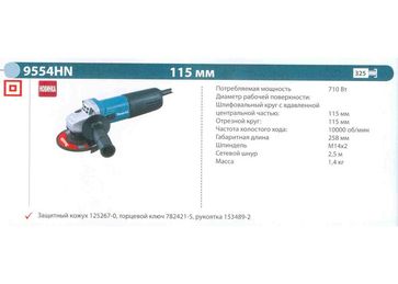 - Шлифмашина угловая MAKITA 9554HN (710Вт, 115мм, 10000об мин, 1.4кг) по выгодной цене 2 450 р. руб.;