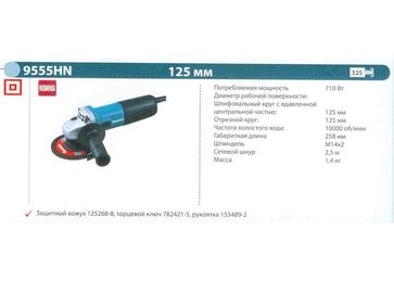 - Шлифмашина угловая MAKITA 9555HN (710Вт, 125мм, 10000об мин, 1.4кг) по выгодной цене 2 550 р. руб.;